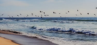 listening to the waves roll in, and collecting shells along the way.
